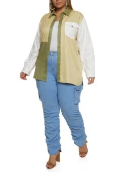Plus Size Color Block Button Front Shirt