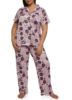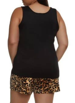 Plus Size Lets Cuddle Foil Screen Pajama Tank Top And Shorts