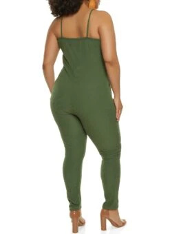 Plus Size Brushed Ribbed Knit Tie Waist Jumpsuit