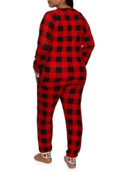 Plus Size Buffalo Plaid Graphic Cuff Pajama Top And Pants