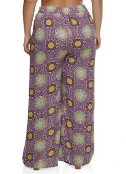 Plus Size Psychedelic Print High Waist Palazzo Pants