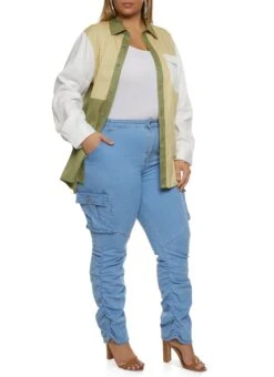 Plus Size Cargo Pocket Stacked Skinny Jeans