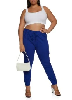 Plus Size Hyperstretch Belted Front Cargo Pocket Pants