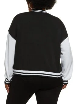 Plus Size Color Block NYC Zip Up Varsity Jacket