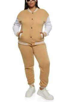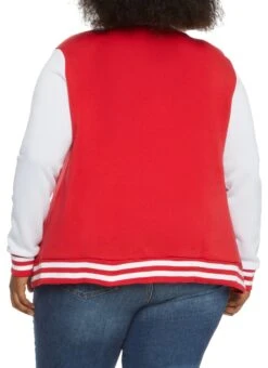 Plus Size A Initial Chenille Patch Varsity Jacket