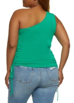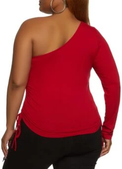 Ambiance Plus Size One Shoulder Ruched Side Top