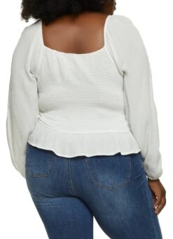 Ambiance Plus Size Crew Neck Long Sleeve Ruched Top