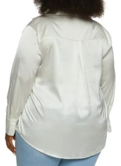 Ambiance Plus Size Satin Solid Button Down Shirt