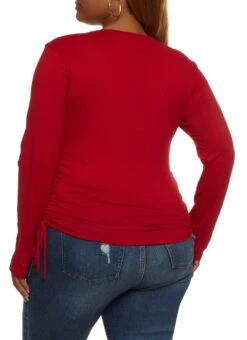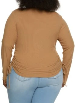 Ambiance Plus Size Ribbed Knit Ruched Scoop Neck Long Sleeve Top