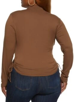 Ambiance Plus Size Mock Neck Side Tie Long Sleeve Top