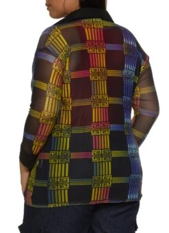 Plus Size Mesh Greek Key Button Front Shirt