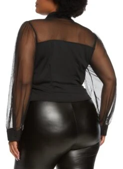 Plus Size Mesh Long Sleeve Zip Front Top