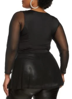 Plus Size Mesh Insert Long Sleeve Top