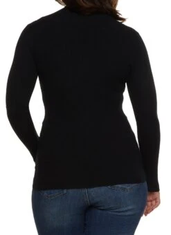 Plus Size Mock Neck Faux Button Sweater