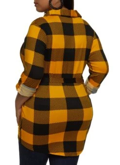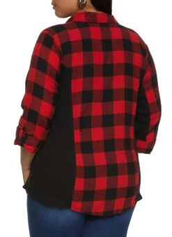 Plus Size Plaid Ribbed Detail Flannel Shirt
