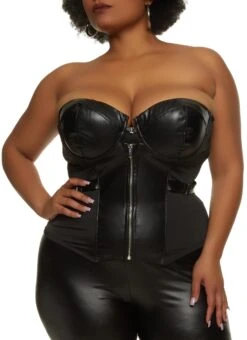 Plus Size Solid Faux Leather Zip Up Bustier Top