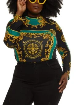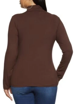Plus Size Solid Mock Neck Long Sleeve Tee