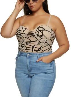 Plus Size Velvet Burnout Glitter Patterned Bodysuit