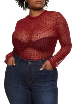 Plus Size Velvet Burnout Patterned Mesh Bodysuit
