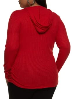 Plus Size Waffle Knit Faux Button Detail Henley Top