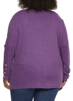 Plus Size Waffle Knit Studded Graphic Patch Top