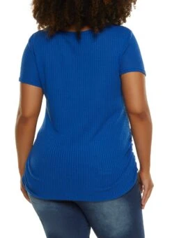 Plus Size Waffle Knit Rhinestone Studded Graphic Tee