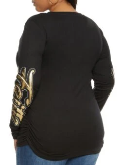 Plus Size Dope Soul Hanky Hem Long Sleeve Graphic Tee