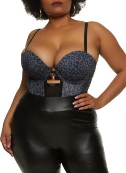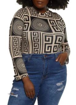 Plus Size Long Sleeve Geometric Patterned Bodysuit