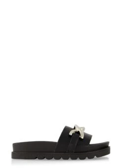 Lug Sole Faux Fur Trim Platform Slide Clogs