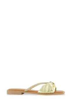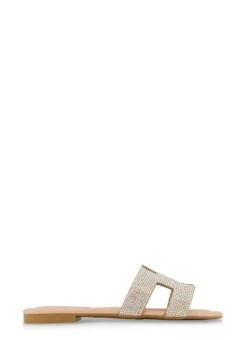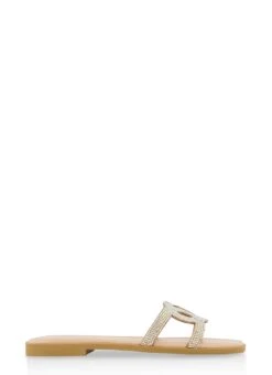 Rhinestone Embellished Buckle Strap Thong Sandals