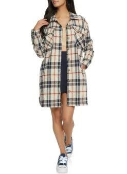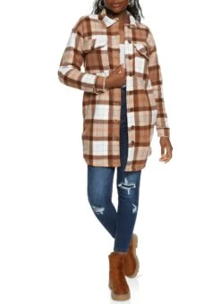 Plaid Brushed Knit Sherpa Lined Longline Shacket