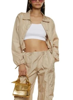 Nylon Snap Button Front Windbreaker Jacket