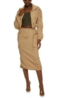 Nylon Zip Front Ruched Sleeve Track Jacket