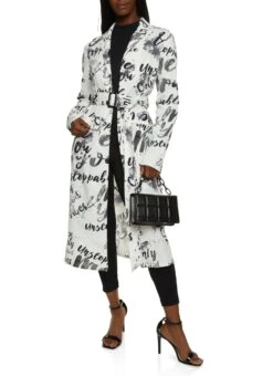 Patterned Belted Trench Coat