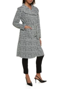 Patterned Shawl Collar Wrap Coat
