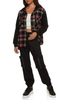 Ambiance French Terry Plaid Button Front Hooded Shirt