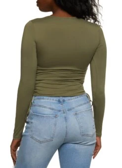 Ambiance Crew Neck Ruched Long Sleeve Top