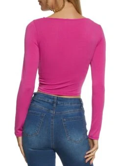 Ambiance Cut Out Ruched Front Long Sleeve Top