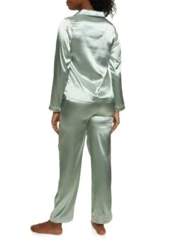 Satin Long Sleeve Button Down Pajama Shirt And Pants