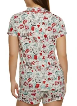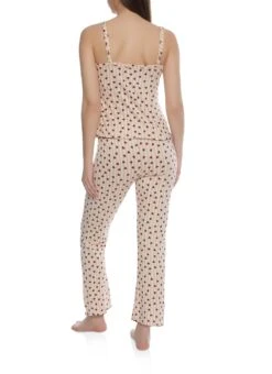 Striped Heart Print Notch Collar Pajama Shirt And Pants