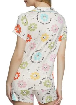Daisy Print Pajama Shirt And Shorts