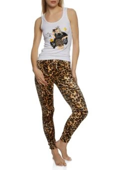 Graphic Pajama Tank Top And Velour Animal Print Pants