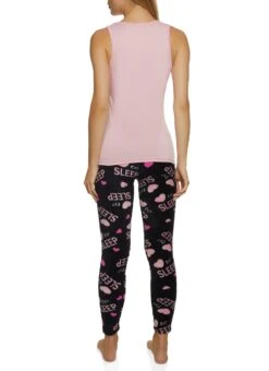 Glitter Heart To Sleep Graphic Pajama Tank Top And Plush Pants