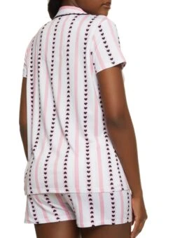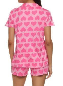 Heart Patterned Notch Collar Pajama Shirt And Shorts Set