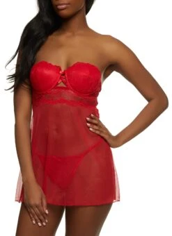 Lace Convertible Babydoll And G String
