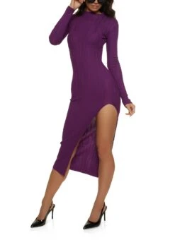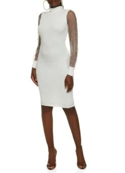 Ribbed Mock Neck Mesh Sleeve Mini Dress
