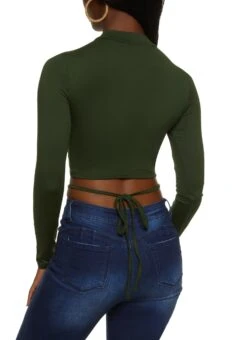 Ambiance Mock Neck Ruched Long Sleeve Crop Top