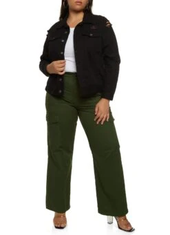 Ambiance Plus Size High Waist Twill Cargo Pants