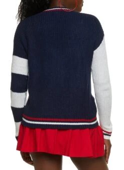 A Initial Chenille Patch Color Block Cardigan – NAVY