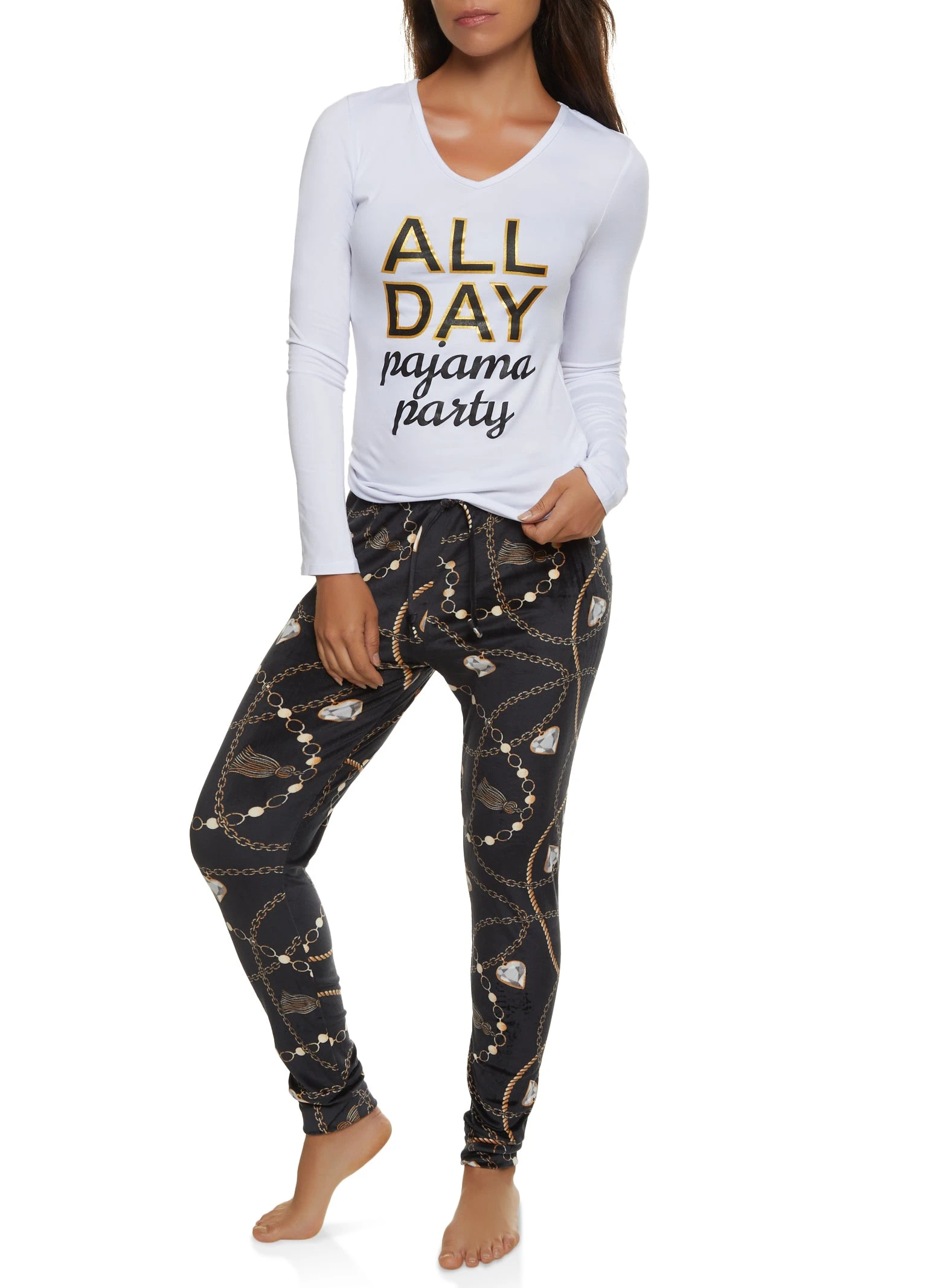 All Day Graphic Long Sleeve Pajama Top and Pants – WHITE
